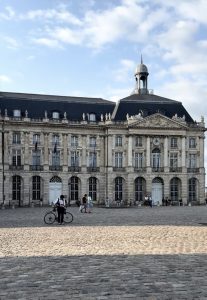 En tranvia nos acercamos al centro histórico y comenzamos nuestro paseo desde la Place de la Bourse, s. XVIII, con su fuente de las tres gracias. Frente a la plaza, se encuentra el Espejo de Agua, el espejo de agua más grande del mundo, que crea un efecto visual espectacular.