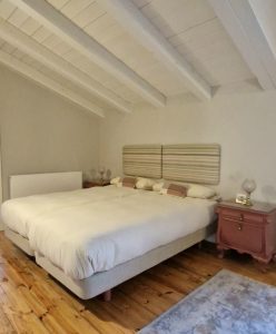 En el caso de alquiler integro de la casa ponene a tu disposición la cocina completa: nevera, congelador, horno, vitrocerámica de inducción, largas encimeras y todo lo necesario para cocinar como cazuelas, sartenes, platos, cubiertos, manteles, etc