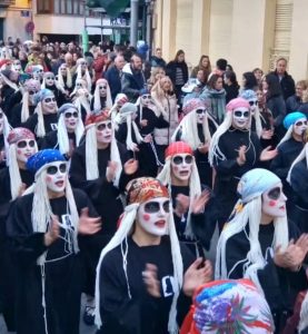 Por otra parte, las mujeres se disfrazan de lamiak. La indumentaria sería túnica negra, alpargatas con calcetines de lana. En la cabeza una peluca blanca amarillenta cubierta por un pañuelo colorido. La cara pintada de blanco, contorno de ojos negros, colorete y labios rojos.